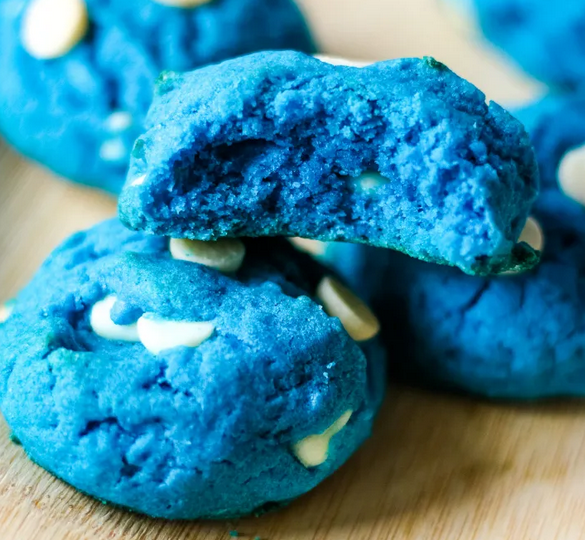An experiment was conducted with shortbread cookies that were dyed red, orange, yellow, green, blue, & purple. Test subjects were allowed to choose from these six colors, and blue was the least chosen color (with green a close second).
